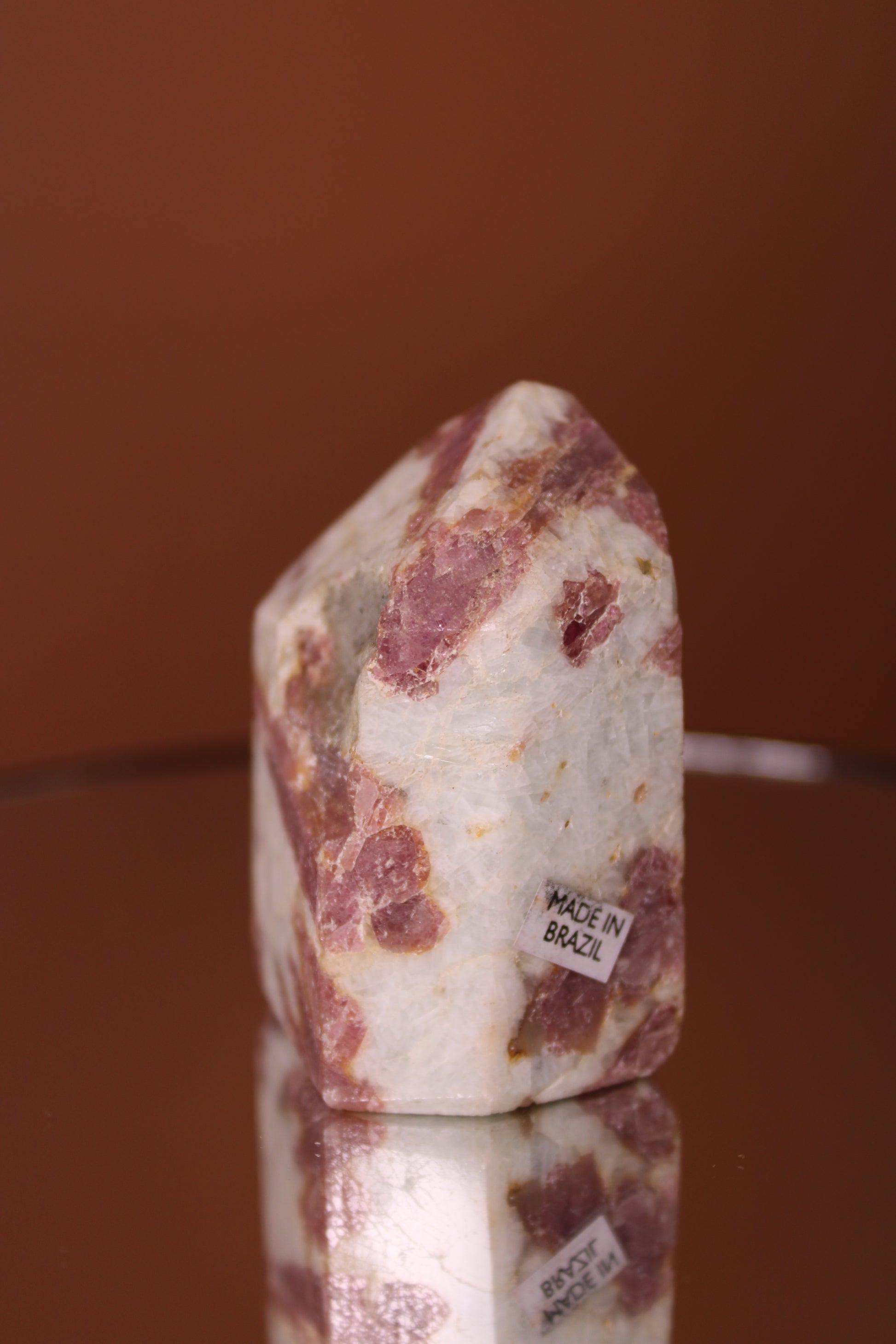 This stunning pink tourmaline tower from Brazil boasts a vibrant pink color. Its natural formation makes it a unique and eye-catching statement piece for any collection.